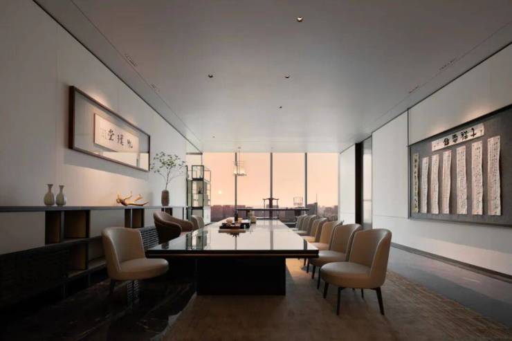 以传承为纲领,斥资约1个亿,打造总面积近2300㎡的五重功能场域,涵盖云端会客厅、茶空间、美术馆、沙龙空间及私宴厅,构筑起虚实相间的空间序列,打造集文艺鉴赏、商务会谈、高定宴飨、外宾接待等多功能于一体的城市会客厅。