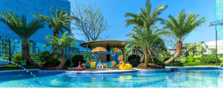 配套无边镜面“景观戏水池”与下沉庭院,一环·双轴·三园·六巷的花园式景观设计,阅览四季风景轮换。