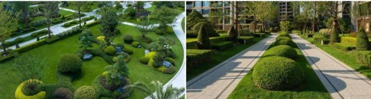 园区内采用“集中绿地,点轴延伸”手法营造四季皆景的度假景观园林。以“一环·双轴·三园·六巷”的花园式设计,开启轻奢度假之旅;