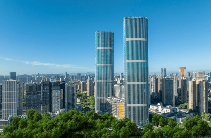 在SKP东南约800米,地铁2号线飞虹路站口,是杭州之门后,奥体落成的海拔第二高双塔(约250米),外号“小杭州之门”。瑰郦中心L-VILLA位于T2塔楼,12层的裙楼就是托尼洛·兰博基尼酒店。