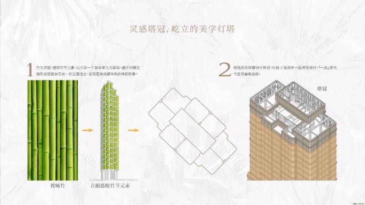 1、以竹为灵感,芙蓉花为建筑韵态,呈现富有成都特色的地标建筑形象。