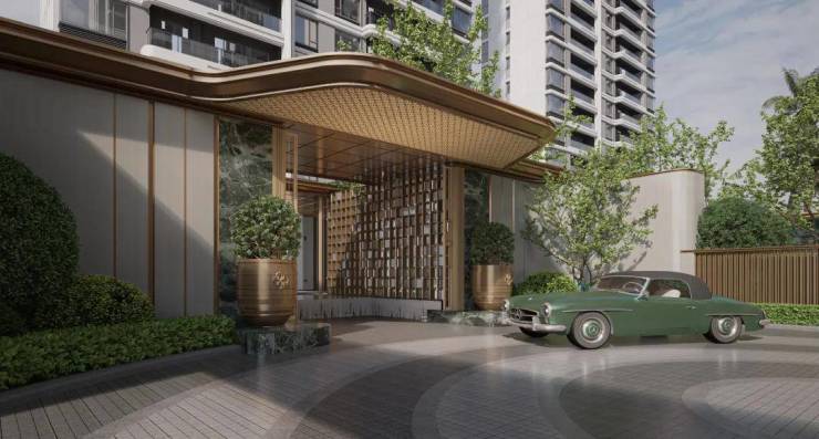 Prada绿奢石、香槟金铝板等建筑细节,彰显居者不凡身份
