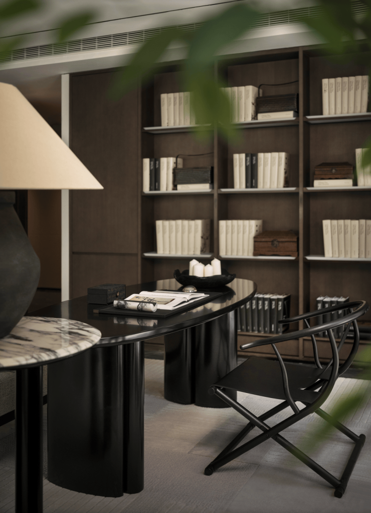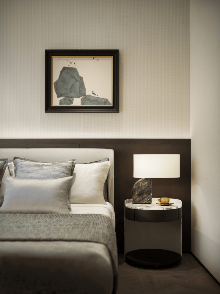 屋內,香氣漸漸燃盡,空間靜謐而舒緩,在深淺不一的色調搭配中,恰如其分地突顯了當代藝術生活的高品質感,同時呼應了理性與感性和諧融合。