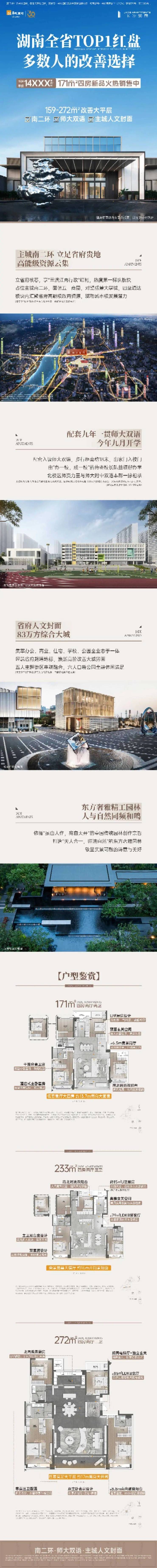 长沙华润润府,为全国第十二座、长沙首座,约240亩,约83万方规划将打造成涵盖办公、街区商业,品质住宅等一体化的城市综合体,匠筑建筑面积约143-268㎡人文臻萃大宅,为主城品质改善首选,为城市峯层定制生活范本,纯粹大平层住区,未来高净值客群汇聚,构建纯粹圈层。