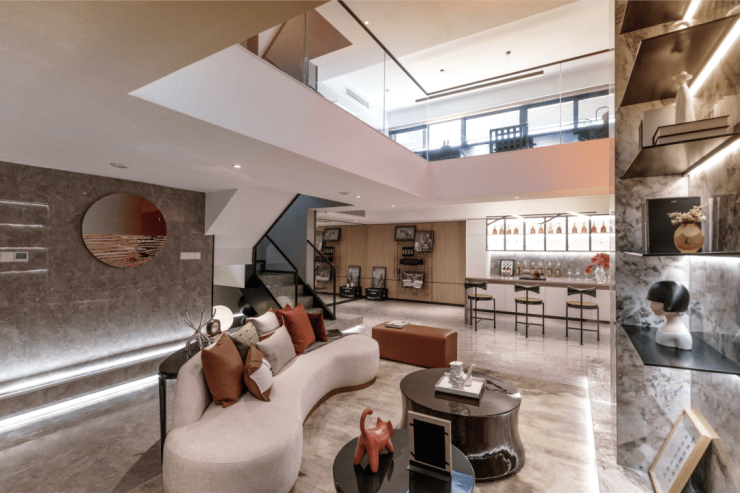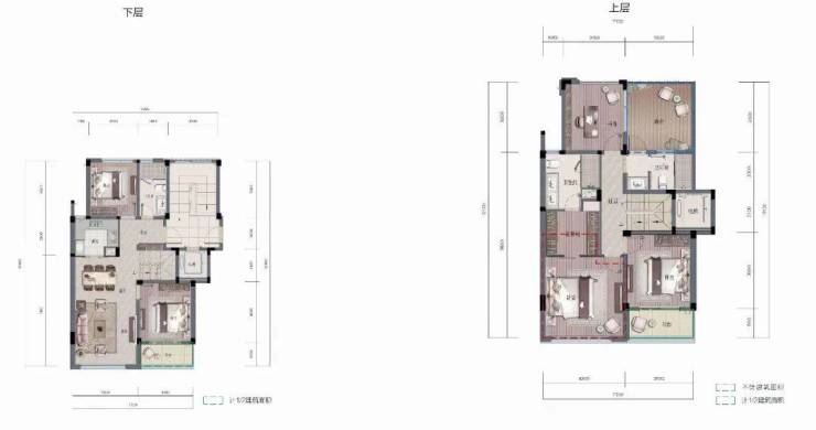 上层来作为公共客餐厅区域:约173㎡精装跃墅,以4+1房设计,套房主卧、瞰景次卧、望山书房、儿童房、储藏间都从容放下,每一位家人皆有自由、自我的空间。