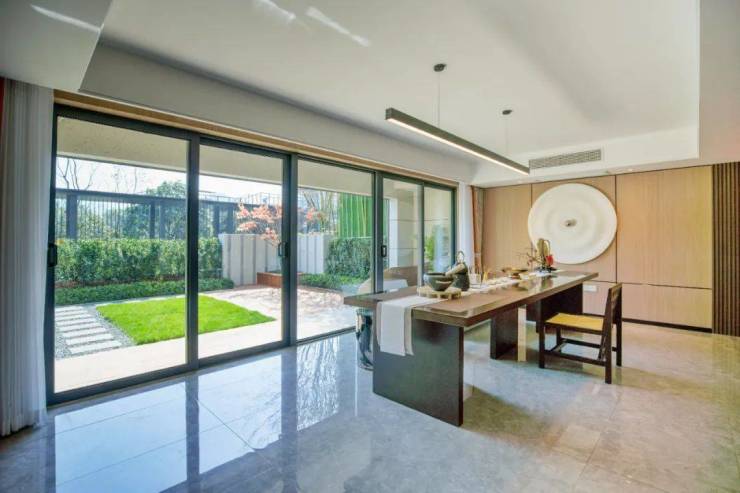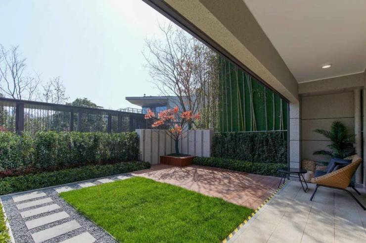 当然,它户型的亮点远不仅仅如此。你看它整体的庭院花园格局,就可以发现推窗就是这样的院子,包括这种尺度,莳花弄草,才算真正的私享园林乐趣。还有它的上叠,一般叠墅户型都是把客餐厅这类活动空间放在楼下,休息间放在楼上,