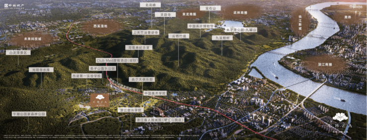 三进西湖 东方低密叠院——中海月陇云岚,择址杭州豪宅顶流的西湖区,西湖周边,掩藏着杭州豪宅的“半壁江山”。而作为西湖群山之间的一块留白之地,龙坞,亦不负厚望。它不仅珍藏着西湖难得湖山资产,亦能够极速通达高科技产业核心。