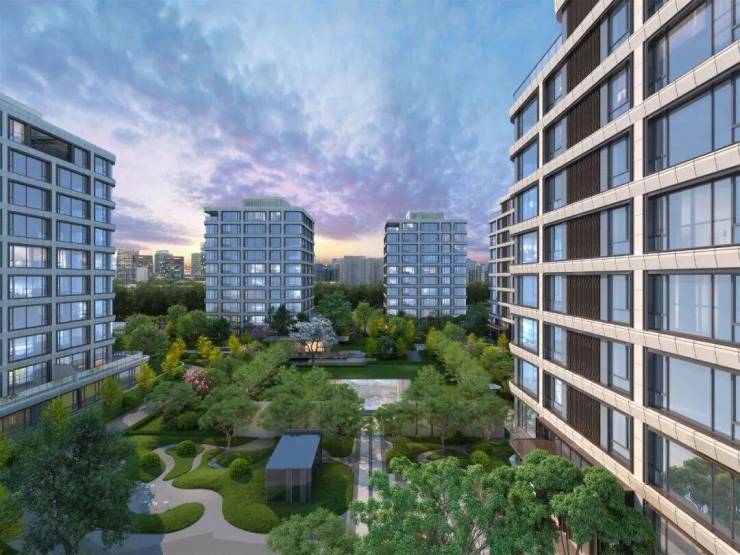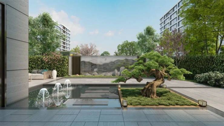 罕见的大平层围合式景观园区,不仅处处皆景,更有三进院落的中式豪宅归家仪制。从府门、园门到宅门层层递进的归家路线,如行云流水般一气呵成。