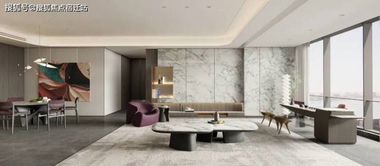 高层产品,以现代简约风格+大面落地窗,让建筑本身与天空融为一体,呈现湖天一色的意境美学,像屹立在太湖上的灯塔。