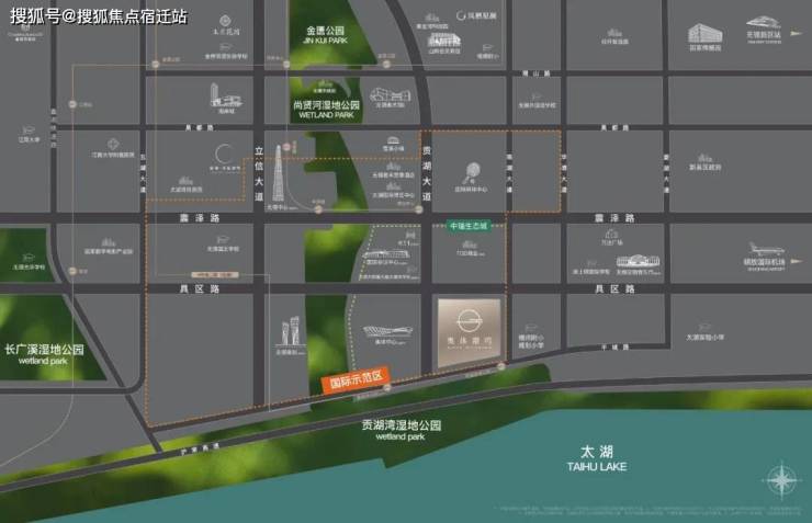 奥体潮鸣一线太湖湾岸,约500米近享亲湖优势,尚贤河湿地公园、贡湖湾湿地公园交汇,以领潮无锡之姿,致敬城市缘起。