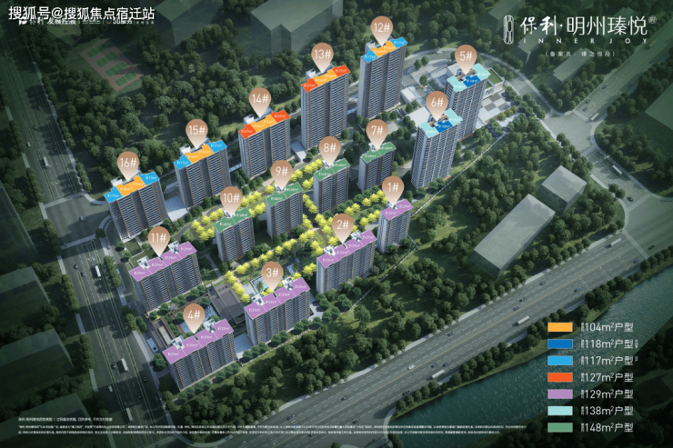 项目总占地面积约5.51万方,总建筑面积约18.43万方,容积率约2.4,绿地率30%,整个项目规划16幢14-26F的高层,总计约985户,户型建面约104-148㎡共8种,以大面积改善为主。