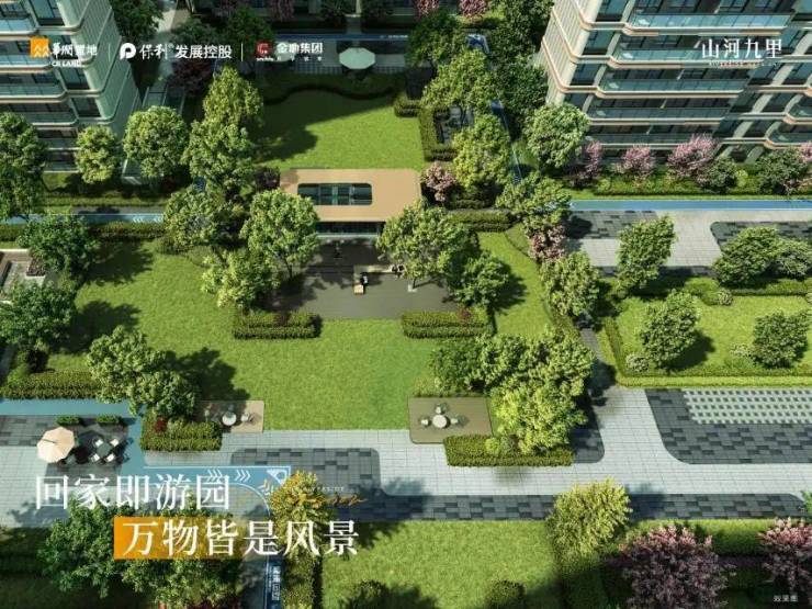 倚水而生,或绿树浓荫,或低语沉吟,一年四季水岸风华,成为窗前的风景,更有约700米河岸滨水景观带,水系环绕下遍布草坪、绿植花卉及休闲设施,随时开始家庭游园会。