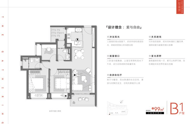99 square meters, three bedrooms, two living rooms, and two bathrooms (246 sets)