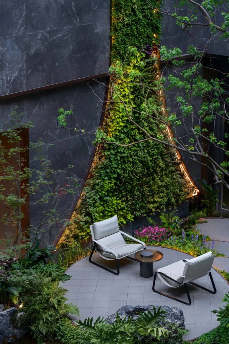 此外,它还在园区中心水景设置了可开可合的悬浮客厅,用亲水的设计来展现绿岛生活,既与静谧自然无缝合融,又可形成独立的社区活动场域,容纳观影、主题活动、聚会等丰盈的生活场景。