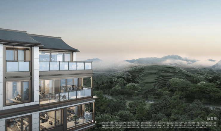 现在,溪映听庐也能享受绝美同款。因着三面被近100米高的茶山萦绕,且园区自身有约10米高差,最终,约50%以上的房源均可在家坐观琉璃山色。