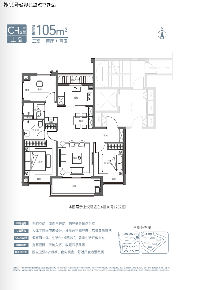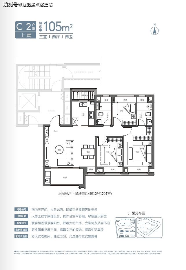 目前展示的建面约105平方米的三房两卫,堪称惊艳爆款!最牛X的户型设计,挑战空间的极限,实现大平层的体验。