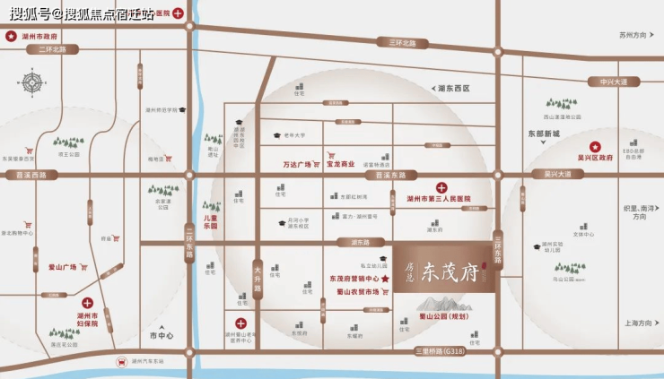【多维交通】紧邻三环东路、G318沪聂线,向北即达内环快速路、沪渝高速等,同时湖州互通、沪苏湖高铁湖州东站(在建)组成全域进出的交通枢纽,共同打造湖州一小时经济都会圈,纵享极速出行