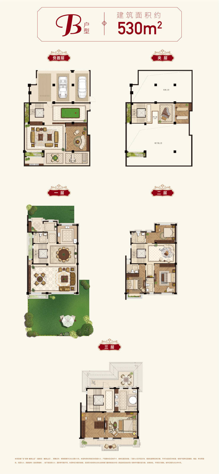 建面约480-550㎡双拼别墅,罕有双拼型制;