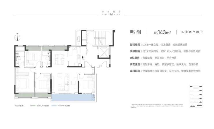 建面约143/170/203㎡户型,四室格局,南北通透;南向大面宽,双联景观阳台,成就郎阔空间尺度,尽揽清风与阳光;独立入户玄关,私密有界;飘窗与房间开间同宽,尽揽阔绰视野;主卧套房设计,独享天地,自成静界。