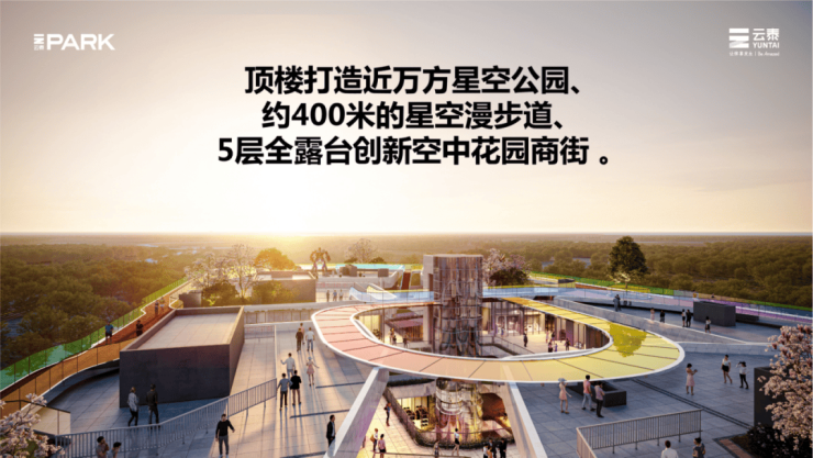 项目在顶楼设置了上虞首个顶楼近万方星空公园、约400米的星空漫步道,将商业生活化,把没有购买和消费欲望的顾客通过“生活享受”的方法拉入,增加商业发展对外的接触,提高潜在客户光临次数,捕捉和提高消费产生的概率。