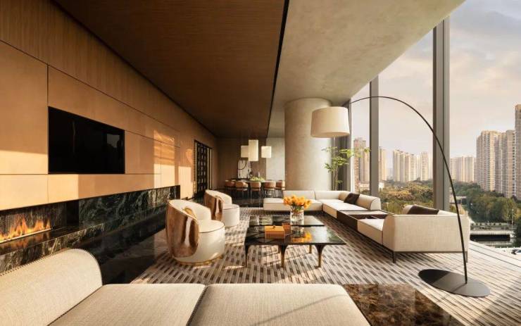 室内由 CCD(郑中设计事务所)打造,凸显了现代奢华和品味的精髓,从高档材料的运用到开放式的空间布局,270度“无柱转角落地客厅”站在Amber 98的样板间,奥体地标杭州之门近在咫尺,仿佛每一个建筑细节都触手可及。全屋通高的柜体,头顶的无边框灯具,将本就优越的层高直接拔高到了“奢享”的概念。