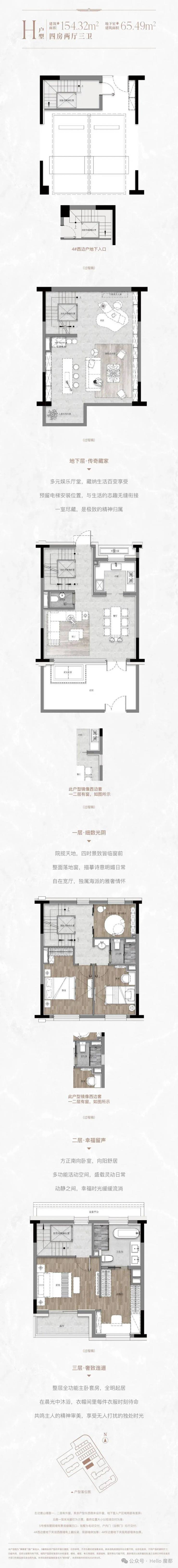 華玥·H户型·建筑面积约154.32㎡,地下室建筑面积约65.49㎡