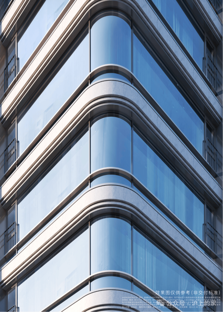其一,270°转角弧形飘窗的创新,超绝的窗墙比造就空中全景舱。弧面玻璃都是三玻两腔,造价高昂。其二,在建筑层间用弯弧铝板来勾勒线条,工艺复杂、成本昂贵,楼体铝板也是弧面设计,并且整体大面运用滚涂工艺,色彩鲜艳、防腐性能好、耐气候性也更好,豪宅气质更加历久弥新!