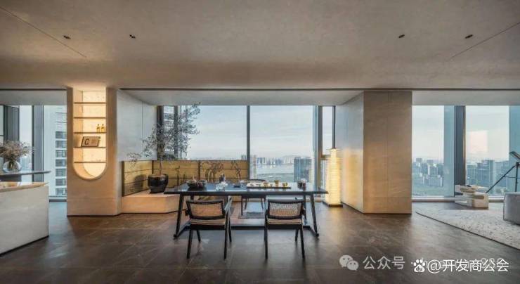 这种意境的营造,不仅赋予了建筑以灵魂,更让人们在欣赏中感受到大自然的壮丽与和谐。 然而,兆丰ESSENCE的魅力远不止于此。即便站在“高山”之下,人们也丝毫不会感到压抑。从北侧园门步入,CBD的喧嚣瞬间被隔绝在外,取而代之的是一片宁静与祥和。建筑巧妙地掩映在回廊、水院与婆娑的罗汉松之间,仿佛置身于一个远离尘嚣的世外桃源。 南侧园区内,一座独栋美术馆静静伫立,为这片静谧之地增添了几分艺术的气息。而近200㎡的河岸观景台,更是让人在享受美景的同时,感受到都市生活的另一种可能。阳光下,银色铝墙将一树树嫩芽衬得格外鲜嫩,这都市中的静谧一隅,仿佛让人穿越到了东京代官山,感受到了那份独有的宁静与惬意。