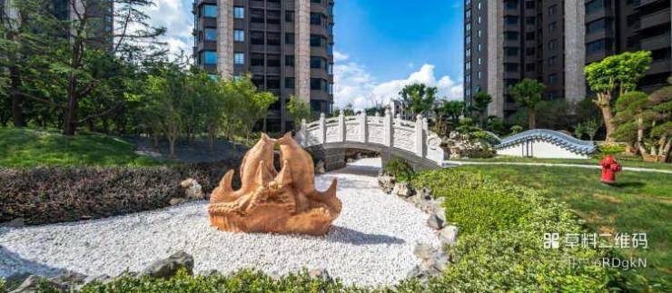 社区内每栋住宅的东、西、南三面皆以U型水系环绕,与住宅结合,寓意