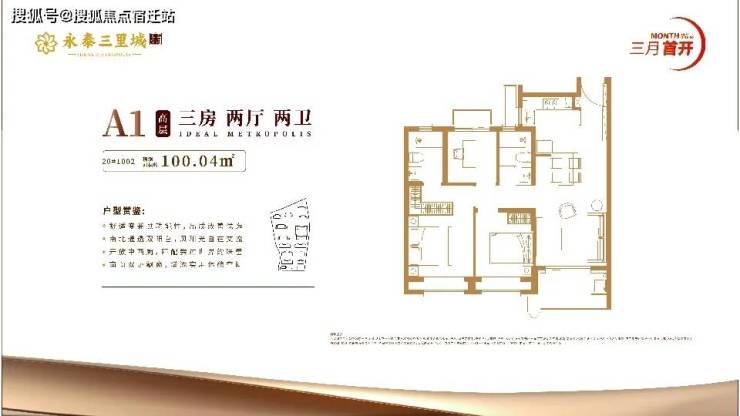 具体细节方面,项目目前只有一个建面约100㎡三房的样板间,带软装后面宽约3.3米,吊顶后层高约2.73米。