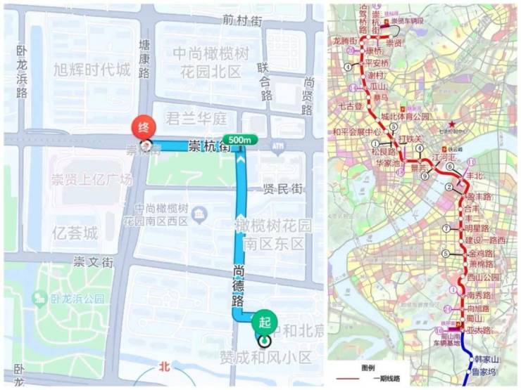 地铁:近距4号线平安桥站、500米15号线崇杭街站(建设中)