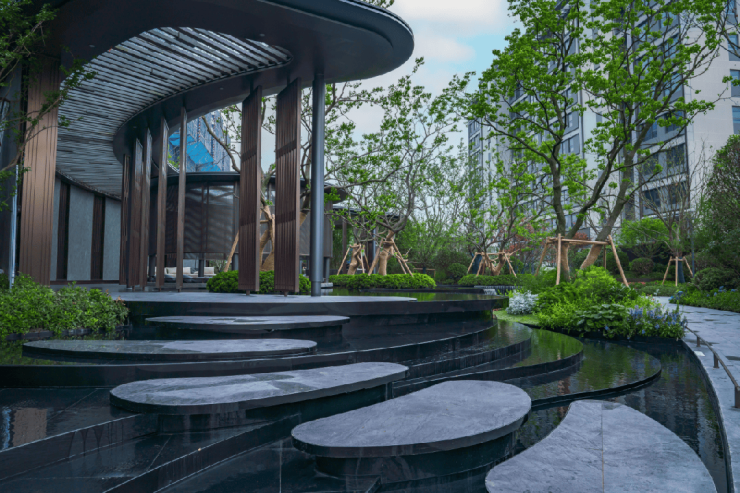 作为象屿在苏州的高端“云”系产品首作,江南云起在实景美学展示区的设计上,以江南水乡文化为底蕴,以“江南云起,姑苏雲居”为设计主题,巧妙构建“雲”和水的相互关系。