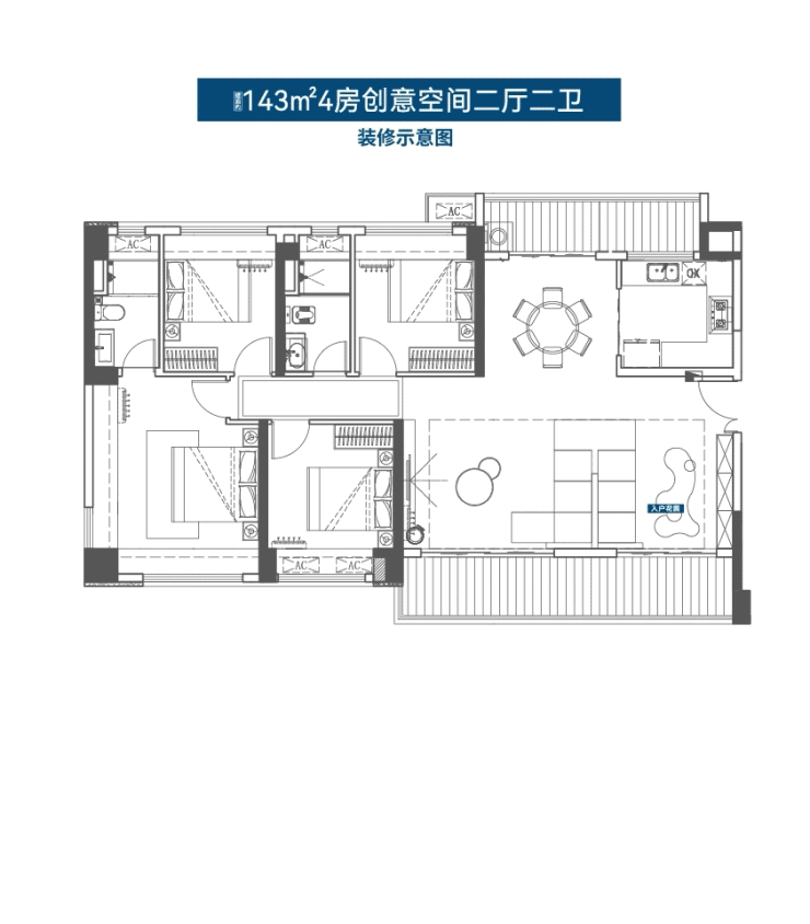 60公分拓展空间,主卧可定制衣柜、可做梳妆台