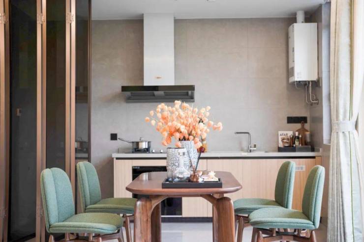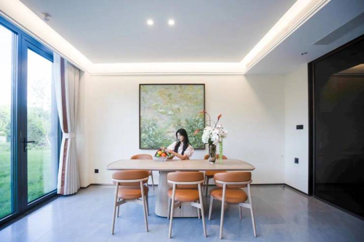 远处望去,轻盈玻璃+质感灰的立面组合,倒映着天光和云影,让建筑成为跃动在湖山间的音符;步入院墅内,超大观景阳台+通透落地窗的细节设计,形成一个“超级光屏”空间,让自然光影的故事于室内不间断上演,每一天的日常也随之愈发生动鲜活。