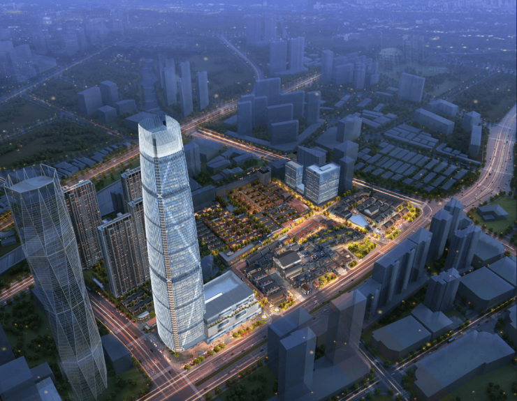 项目采用海派新中式的外立面和超高层的设计相辅相成的设计风格,高层住宅外立面由日清操刀设计,运用了大量红色元素,也与整盘海派红砖元素一脉相承。