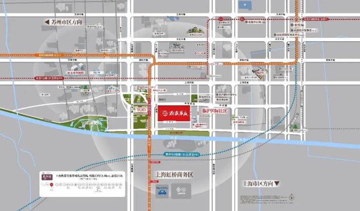 嘉闵线十八港路站(规划中)TOD作为太仓融沪第一站,率先享受沪太同城之利。本项目距十八港路站TOD直线距离仅约150米,为城市层峰家族带来沪太同城新时代高端生活方式。