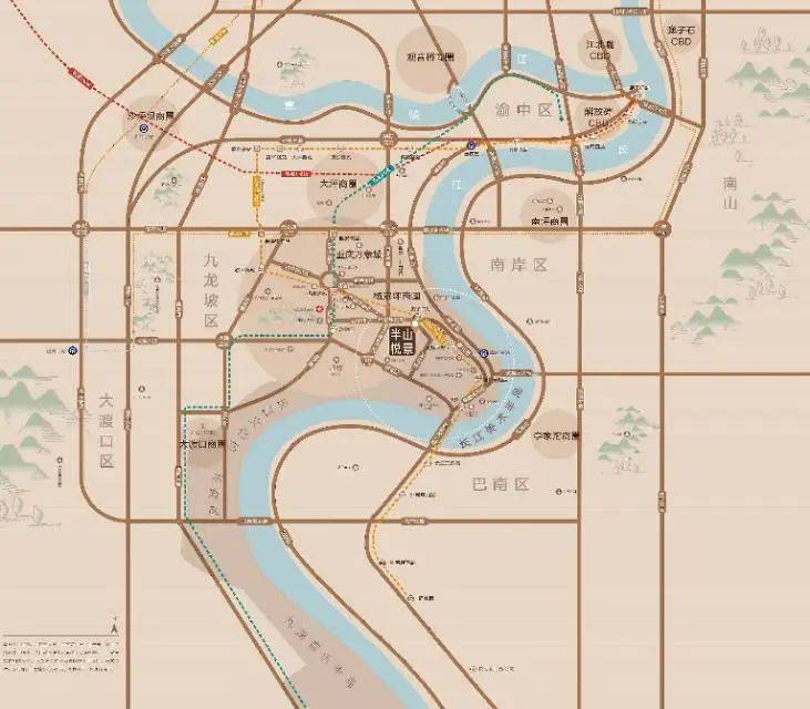 重庆华润半山悦景东南紧临南北大道是重庆南北发展轴上的主要纽带,连接江渝北,九滨路以北连接渝中过鹅公岩大桥直达南岸,李家沱大桥连接巴南,黄桷坪大桥(在建中)通车后可快速串连重庆东站与重庆西站全线贯通后,从半山悦景可快速通达主城各区。