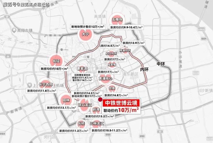 目前上海内环核心地段新房价格遍地15万/㎡+、内中环普遍来到12万/㎡+;