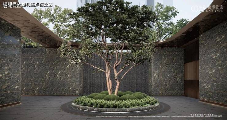 奢石景墙与定制金属、大乔木融合打造隐奢豪宅入口,进口铂金钻奢石满铺立面搭配灵动水景,营造出一种低调奢华的氛围,引领业主的归家仪式。