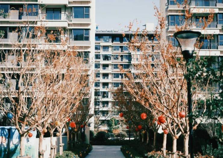 全社区人车分流设计,以“礼仪门楼-迎宾树阵-核心景观-楼栋邻里景观-入户景观”五重归家动线,步步有景,步移景异。