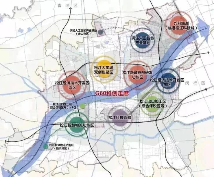 重要产业:2018年11月,长三角区域一体化发展上升为国家战略。2019年,长三角G60科创走廊纳入《长江三角洲区域一体化发展规划纲要》。松江作为长三角G60科创走廊策源地,科技创新与产业发展深度融合的鲜活样本。是构建新发展格局国内国际双循环的战略链接点,也是长三角科创走廊国家战略重要平台的支撑点。