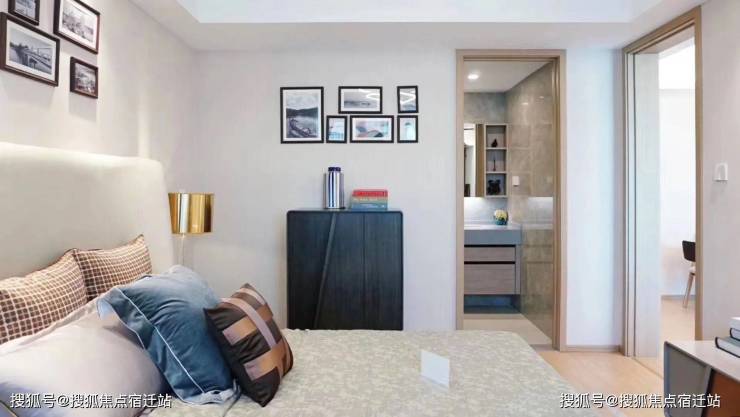 主卧同样采用套房设计,开间约4.2米,进深约3.5米,面积约15㎡,主卫面积约5.5㎡;南次卧开间约3.3米,进深约3.75米,面积约12㎡;
