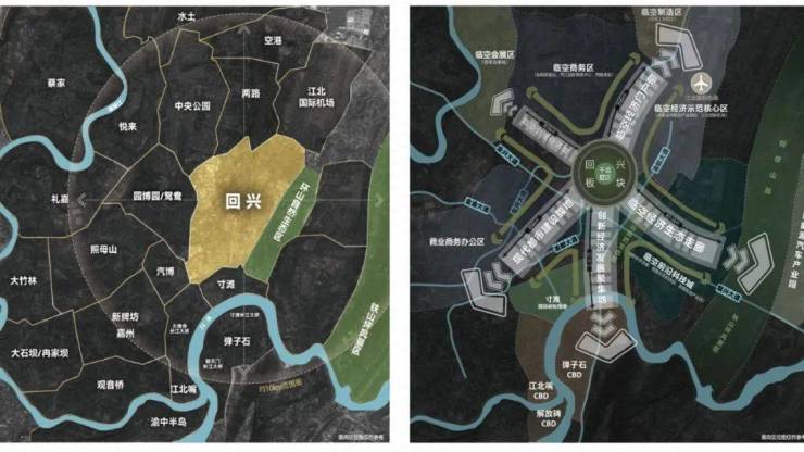 从地理位置来看,回兴板块位于重庆渝北的“几何中心”,往北是未来城市副中心中央公园,以南是已经发展成熟的汽博中心,向西衔接礼嘉、园博园片区,向东则紧邻江北国际机场和空港新城,发展潜力巨大。