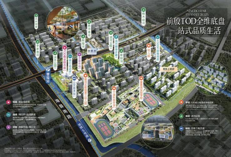 鄞州前殷区块作为宁波首个TOD导向的大片区开发项目,是宁波轨道交通TOD开发探索的示范性项目,在品牌经验积淀与持续深耕的基础上,以板块城市交通完善为基础,随着各项配套的逐步兑现,延伸和发展区域多元功能空间与基础设施,实现区域生活资源的高密度聚集宜居活力生活圈。