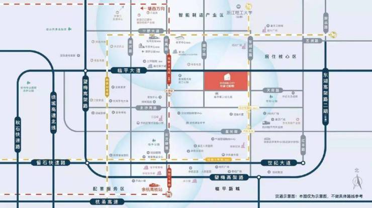 3.产业配套:区域内共引进贝因美、老板电器、春风动力、西奥电梯、诺贝尔陶瓷、余杭生物医药高新园区等300余家规模企业。
