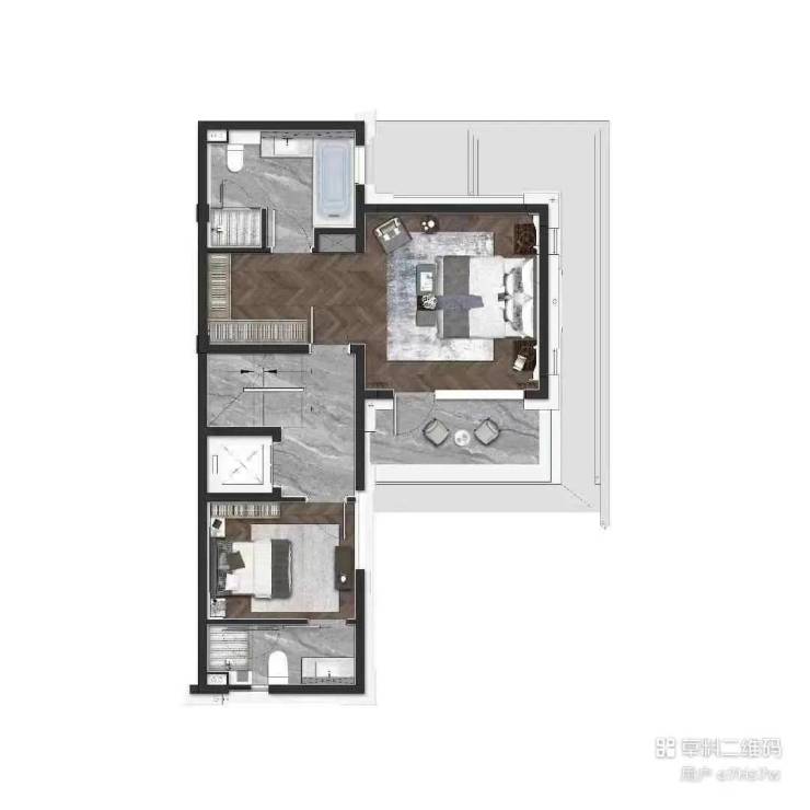 第三,打造双重院落景观,前庭院运用徽式建筑代表作四方水街结合汉白玉御道、日本黑松、古法琉璃、铜制景墙等打造惊艳的归家仪式感,后庭院则打造了3500㎡中央景观,成为您闲庭漫步的不二休闲区域。