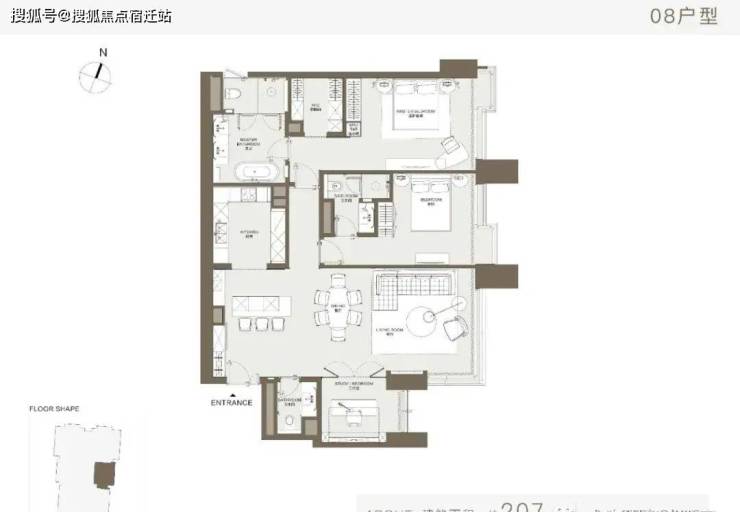 上海宝格丽公寓 ,位于整栋建筑的5层至32层之间,共计27层,243间公寓,提供一居室到三居室,面积约146㎡到约256㎡,而32层则为600㎡的复式结构户型。