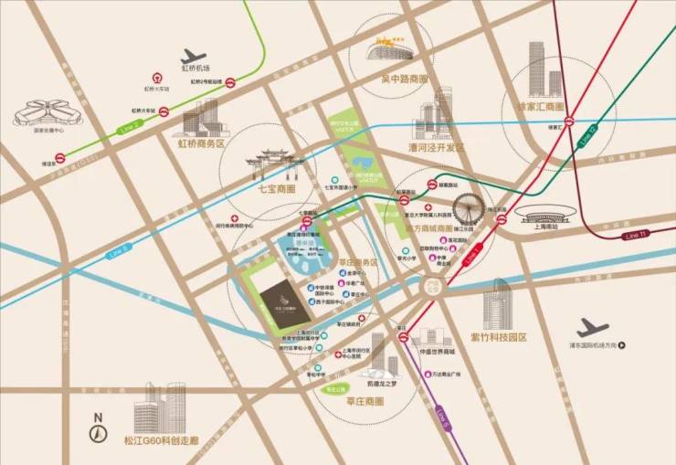在交通方面,中企云启春申同样具有得天独厚的优势。项目紧邻拥有“换乘之王”称号的12号线七莘路地铁站,除了13号线外,其他地铁线路都可以轻松换乘。无论是前往徐家汇还是其他商圈,都只需短暂的车程。而已经公示的嘉闵线未来将联通大虹桥枢纽,为居民的出行提供更多便捷选择。预计2027年正式通行运营后,高铁飞机出行将更加便捷,让居民轻松畅游国际都会。