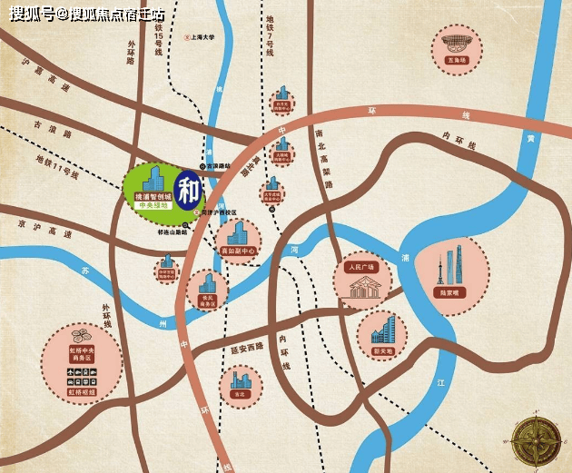 项目位于上海七大中心城区的普陀区桃浦板块,中心城区的西北门户,距中环线仅1公里,上中环后即可到达人民广场、虹桥枢纽、陆家嘴。