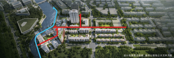 也造就了三轴一湾的景观架构:3条漫步景观轴线交汇于“静谧内湾”,将滨江盛景、湾区雅韵、公园绿意无界融合。